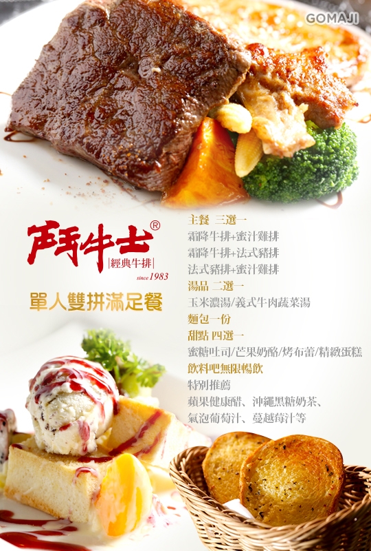 主餐 : 霜降牛排+蜜汁雞排/霜降牛排+法式豬排/法式豬排+蜜汁雞排 三選一 + 湯品 : 玉米濃湯/義式牛肉蔬菜湯 二選一 + 麵包一份 + 甜點 : 蜜糖吐司/芒果奶酪/烤布蕾/精緻蛋糕 四選一 + 飲料吧無限暢飲(特別推薦 : 蘋果健康醋、沖繩黑糖奶茶、氣泡葡萄汁、蔓越莓汁等).jpg?1501756763&ver=20250714)
